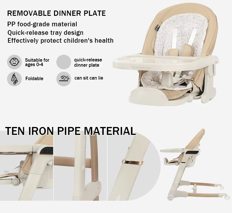 Feature highlights: This 3-in-1 foldable baby high chair is designed for children aged 6-36 months, crafted with a non-toxic material ideal for safe feeding. It supports multifunctional use and suits small-space dining, featuring compliance with CE, ASTM F404, and EN14988 certificates which ensure market access and adherence to stringent safety standards.
